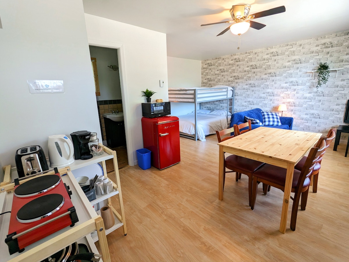 Mini-cabaña íntima para 2 personas ubicada entre el lago y el bosque en Pohénégamook. Verdadero nido de tranquilidad, ofrece todas las comodidades modernas en un ambiente cálido. Su ventaja única: un spa privado, perfecto para relajarse bajo las estrellas, rodeado de naturaleza y silencio. Observe los ciervos, respire aire puro y disfrute de cada momento en este refugio tranquilo, ideal para una escapada romántica y revitalizante en cualquier época del año.