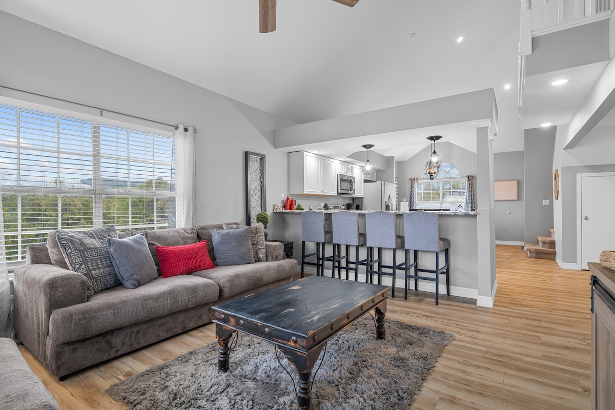 ¡Ven a celebrar las fiestas con nosotros! Branson sabe cómo hacer que la temporada brille con los numerosos espectáculos y actividades temáticos de Navidad. Este condominio recientemente renovado da un toque moderno a todos tus artículos básicos de vacaciones. A cinco minutos del distrito de entretenimiento, la diversión está a tu alcance. Estás a pocos minutos de espectáculos, restaurantes elegantes y Silver Dollar City. Este condominio está equipado con todo lo necesario para una experiencia vacacional inolvidable en las hermosas montañas Ozark.