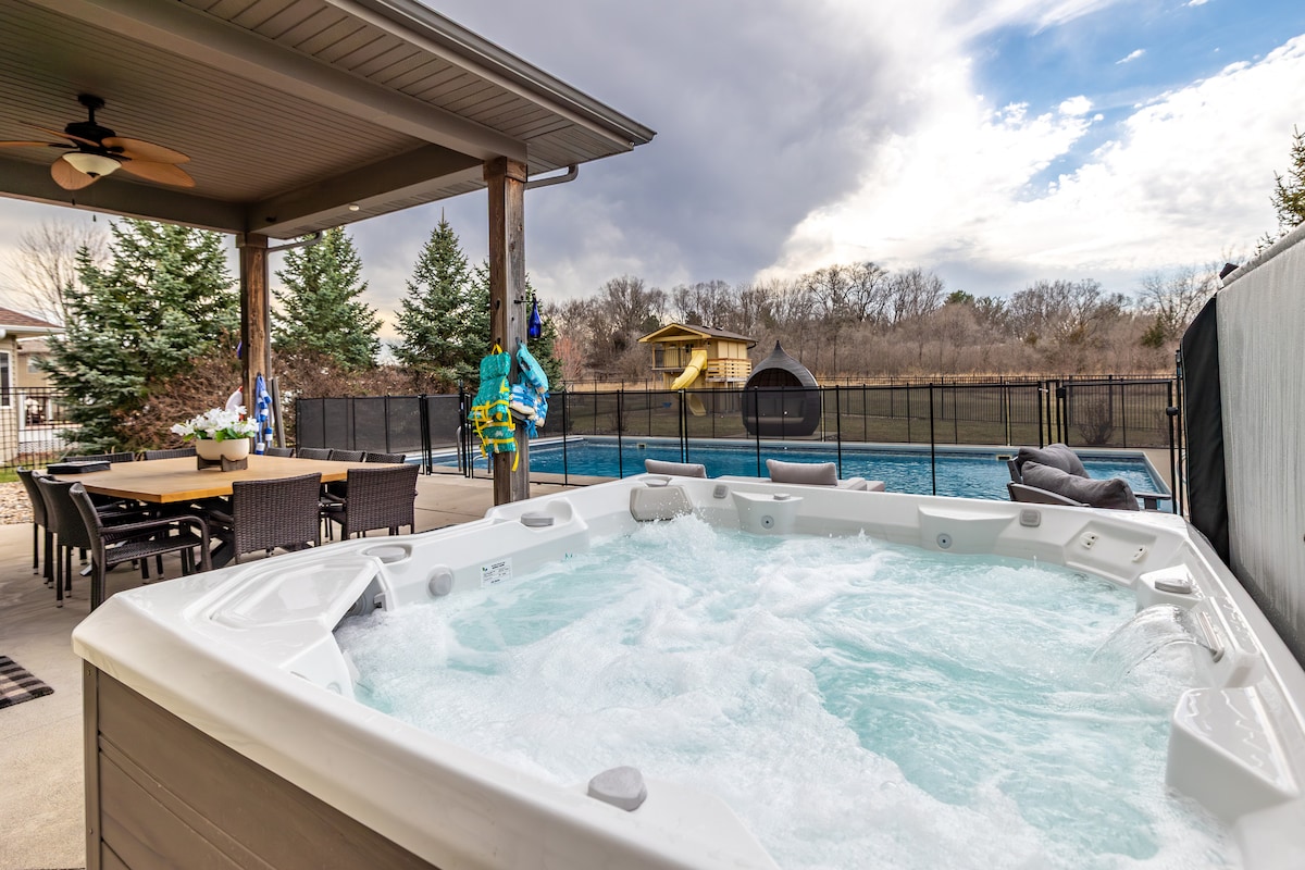 Nuestra casa de vacaciones de 1948 está en 4 acres y cuenta con 3 dormitorios, 3 baños completos, 2 medios baños, suite nupcial (4º dormitorio), TV de los 70/sala de juegos, bar Tiki y sala de juegos para niños. En el exterior tenemos una piscina (garantizada para estar abierta del 26/5 al 5/9) y un jacuzzi (todo el año). Ubicado a 15 minutos del centro de la ciudad DSM y a una milla de distancia de una tienda de comestibles/restaurantes. Se permiten hasta 2 perros por una tarifa adicional. *** Se permiten eventos/sesiones de fotos solo con permiso por escrito y se cobrará una tarifa adicional. No se permiten eventos de más de 25 personas en total.***