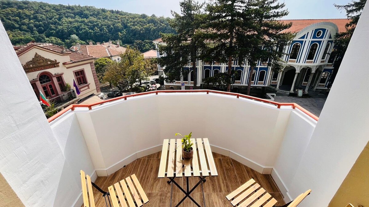A cosy apartment in a lovely small house with perfect location at the heart of the town and amazing view to the historical Gurko street houses, having all what a town visitor or a business traveler may need. The house is on a quiet street in the town center just a few minute walk from the main town street, the historical Gurko Street, the traditional craft street Samovodska Charshija and many other places of interest. Restaurants, cafes and nightlife are within a very short walking distance.
