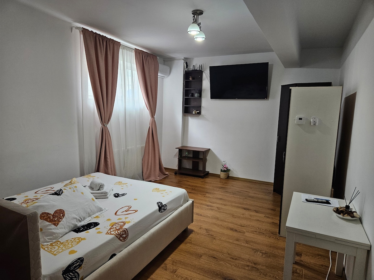 The apartment is equipped with its own heating system for water and radiators. A comfortable bed for 2 people, smart TV, Netflix, kitchen area, a shower cabin in the bathroom. The apartment is located 7 minutes away from Jerry's Pizza, Hut Pizza, Torenta Pizza, Mandaloo terrace, Hood terrace, non-stop grocery stores, 15 minutes away from the subway, line M2, 6 stations directly to the city center, and the Old Center of Bucharest.