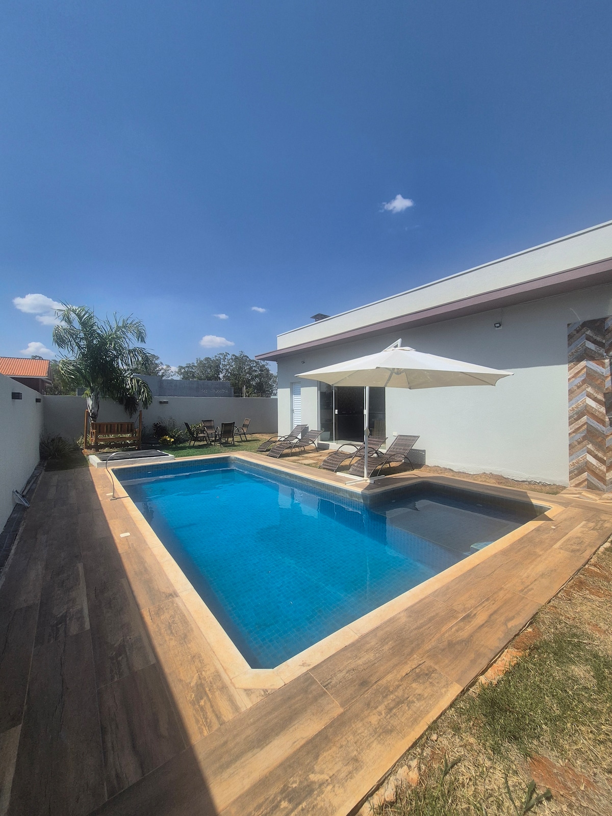 Piscina climatizada 🏝️🏝️🏝️ Casa de alto estándar, nueva, recién construida especialmente para recibir huéspedes con calidad. Con piscina climatizada, 4 dormitorios, 2 de ellos suites, maravillosa zona gourmet equipada con horno de cerveza y cocina. Ven a pasar unos días increíbles en una casa totalmente diferente.