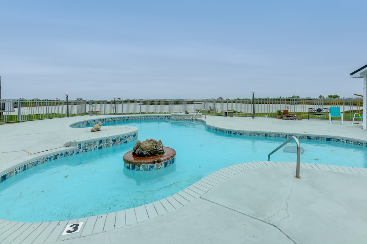 Grab your swimsuit and some sunscreen for a Gulf Coast escape to this 2-bed, 2-bath condo. This comfy escape boasts colorful coastal decor, a wet bar, a private deck overlooking the community pool, and a fully equipped kitchen. Spend your days lounging by the pool, playing in the game room, or strolling along Mustang Island Beach. With dining and shopping in Port Aransas or day trips over to Corpus Christi, you and your furry friend always have another adventure!