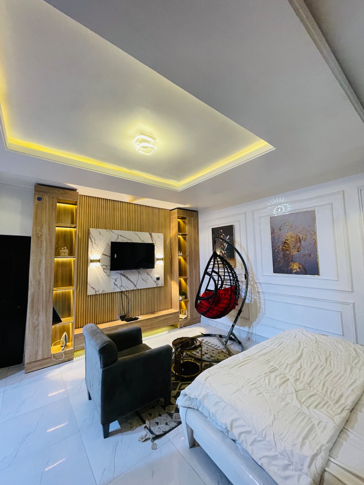 Nestled at the heart of Port-Harcourt GRA Phase 3 in a very serene and peaceful environment, this one-bedroom apartment is all you need for your work time off, vacation or honeymoon. Designed with simple concepts of warm minimalism and bohemian living, every aspect of the space gives off a feeling of peace, calmness and joy to ensure you never miss home. The apartment is equipped with modern facilities, a beautiful home office and a full-stack kitchen. There is also a swimming pool.
