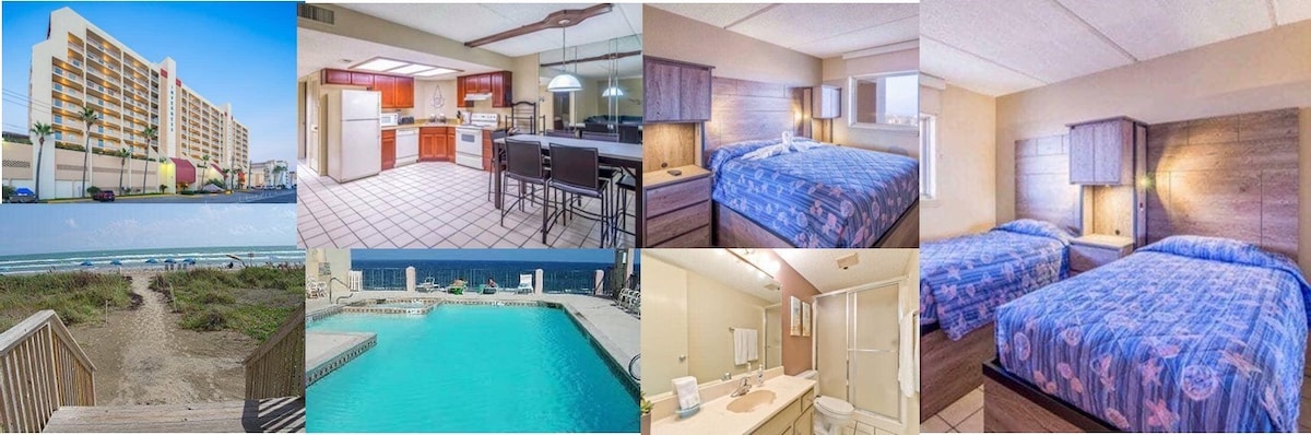 Spend your vacation in this beautiful corner Beach Front condo with spectacular views from the 4th floor overlooking the Gulf!! Recently remodeled with granite counters and fresh paint. Direct access to the beach, pool / hot tub. 1 bedroom plus bunk beds and queen sofa bed to accommodate up to 6 guests. Enjoy your mornings watching the sunrise. Fast WIFI and parking for our guests. BE ADVISED THE POOL WILL BE CLOSED OCTOBER 27 FOR ABOUT 45 DAYS! WILL BE NOISY OCT20 FOR spalling repairs