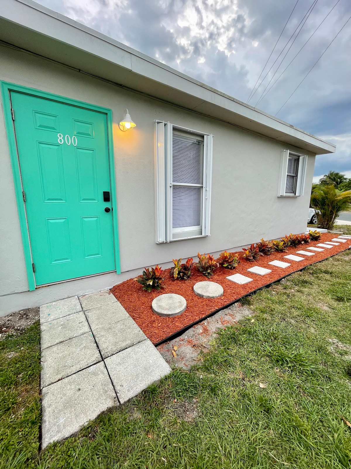 Estudio privado en la planta baja diseñado para huéspedes que quieran un lugar limpio para dormir y recargar energías. Ideal para viajes de trabajo o visitar a la familia. Entrada privada, cama tamaño queen, dos televisores y wifi ultrarrápido (≈700 Mbps). Cocina pequeña sencilla para comidas ligeras (sin cocina completa). Estacionamiento en el lugar con espacio para varios vehículos. A 3 minutos en auto del centro de Stuart y a 11 minutos en auto de la playa. Nota: tren cercano; la mayoría de los huéspedes duermen sin molestias, pero las personas con sueño ligero deben tener esto en cuenta. Hay un escalón en la entrada.