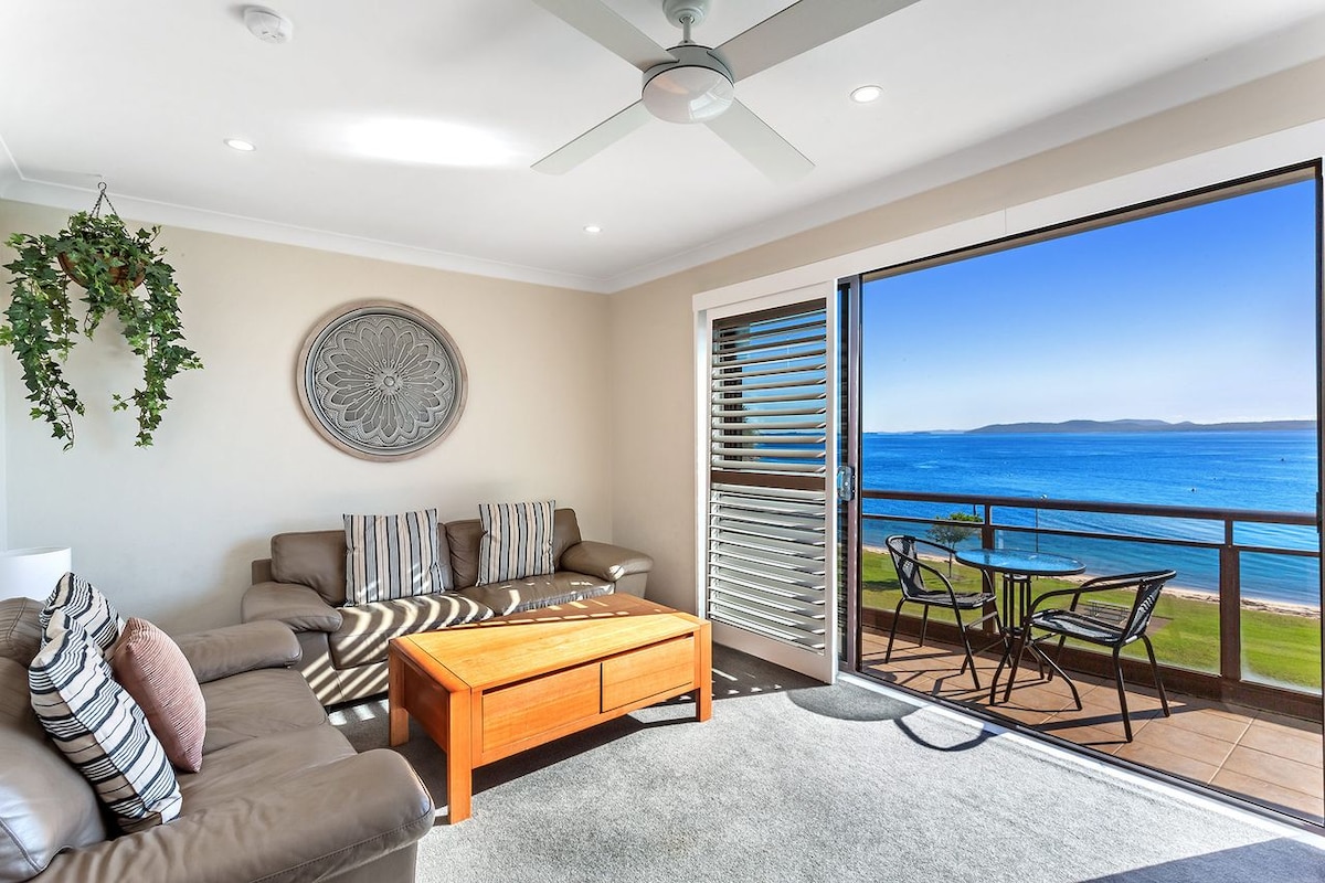 Un espacioso apartamento de 2 dormitorios con increíbles vistas de Shoal Bay Beach y a poca distancia a pie de Little Beach. Puedes ir caminando hasta el RSL para cenar o ir caminando a Nelson Bay para visitar el puerto deportivo. 2 camas tamaño queen, ropa de cama básica proporcionada, perfecta para parejas. También permito estancias de una noche. Aire acondicionado con sistema dividido recientemente instalado. Nota: La política de cancelación del anfitrión para este anuncio está configurada como estricta.