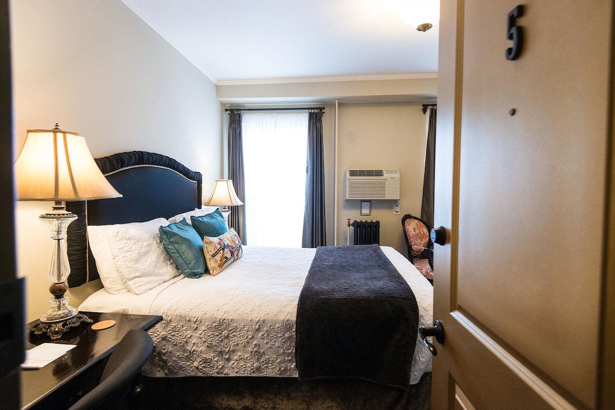 Experience unmatched luxury in Portland's bustling West End, where a diverse array of flavors and vibrant entertainment awaits. Our Deluxe Queen room boasts a distinctive vintage-modern aesthetic and timeless allure. Relax in the stylish seating nook, adorned with leather and tweed, perfect for morning brainstorming or leisurely card games. This elegantly decorated room, featuring a supremely comfortable bed, exudes unique character and charm making it perfect for 2 guests.