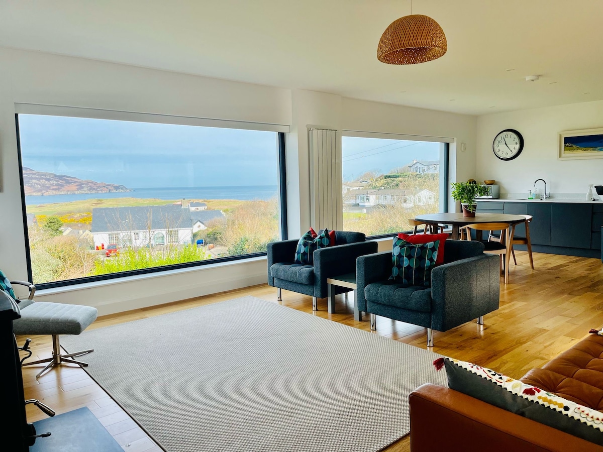 Una casa encantadora, espaciosa, espaciosa, limpia y cómoda situada en Atlantic Drive con vistas espectaculares al mar y a la tierra. Fantásticos paseos, 2 fabulosas playas, opción de 5 campos de golf, 3 hoteles y numerosos pubs, restaurantes y entretenimiento. Las actividades cercanas incluyen: Campo de prácticas Senderismo con ponis y ponis de golfo Surf de remo con windsurf Alquiler de bicicletas Piscina Rango de pesca en el mar a pie para todas las habilidades El impresionante paisaje de Donegal en el arte y la artesanía