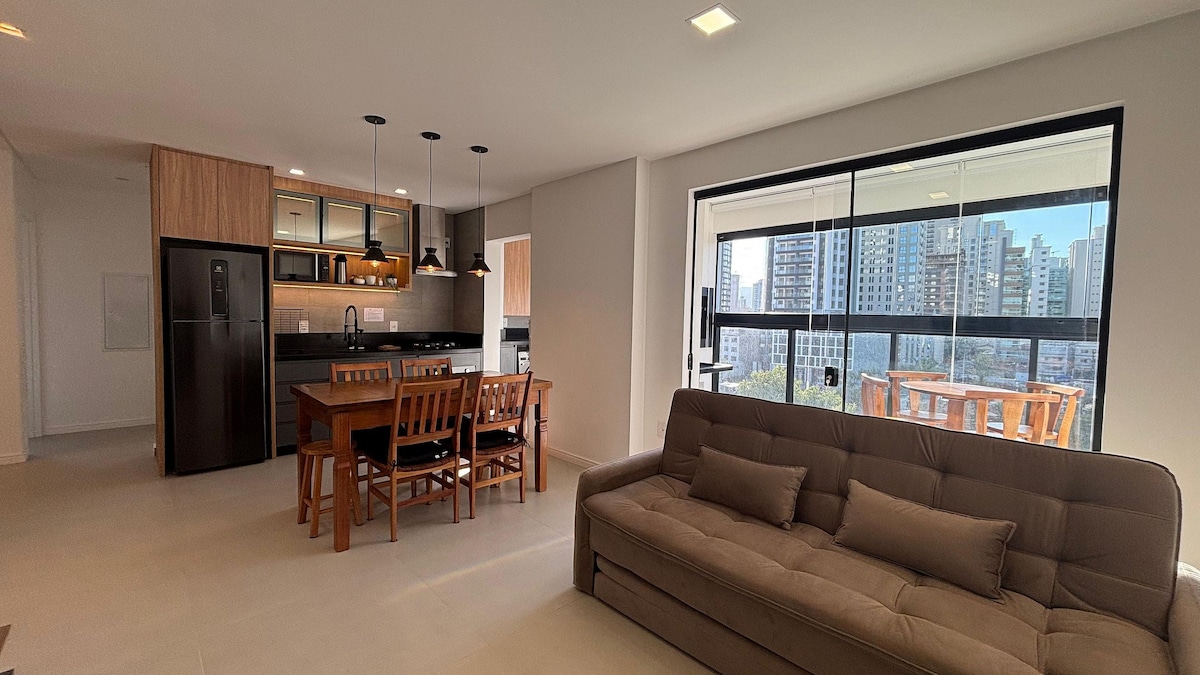 Apartamento finamente amueblado en la mejor ubicación de Meia Praia (Itapema), esquina con Rua 255. Un sofisticado refugio junto al mar, ideal para aquellos que valoran la comodidad, la elegancia y la practicidad. • Frente al mar con vistas impresionantes. • Cocina completa con parrilla de carbón, parrilla, brochetas y utensilios. • Internet wifi • 3 suites grandes con camas tamaño queen. • TV y aire acondicionado en todas las habitaciones. • 1 plaza de aparcamiento privado en el edificio – tamaño: 9 m x 2,35 m