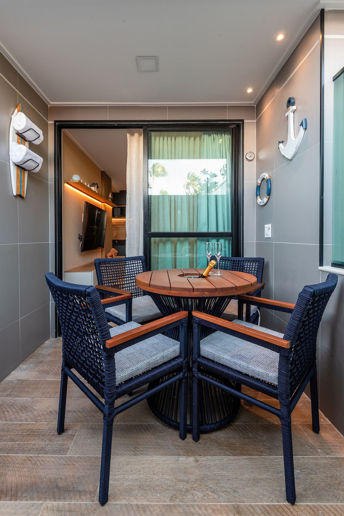 A pocos pasos del mar aparece un refugio con ventanas del color del cielo. La hamaca en el balcón te invita a balancearte perezosamente y la entreplanta es un espacio íntimo para conversaciones tranquilas o lecturas serenas. Las plantas abrazan los alrededores y el piso claro refleja la luz suave de la costa. A pocos metros de la playa, el tiempo se ralentiza y el corazón descansa. Cada detalle traduce sencillez y poesía. Un refugio junto al mar.