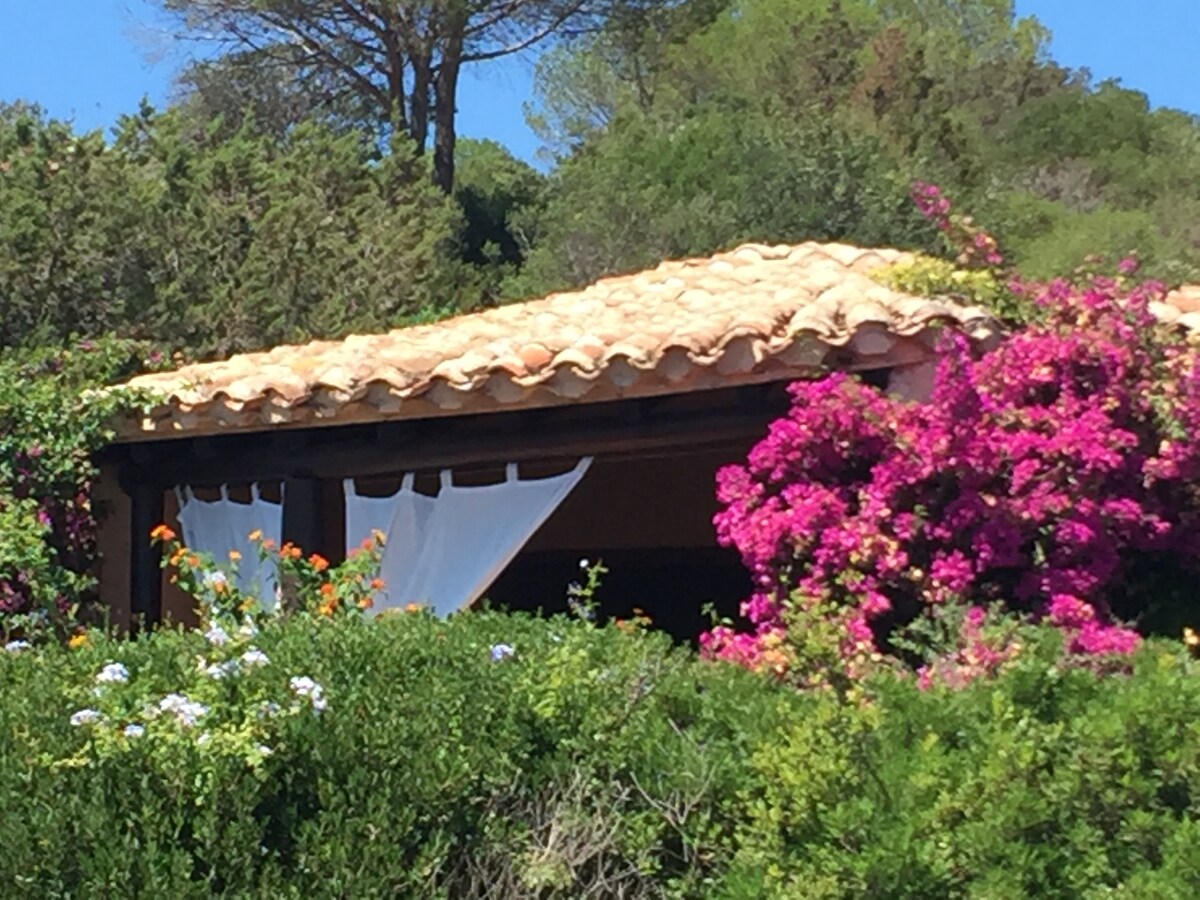 Cabaña dentro de una gran propiedad, en el corazón de la Costa Esmeralda, rodeada de vegetación, con total privacidad, con terraza y un gran jardín con vistas a la bahía de Liscia di Vacca, desde la que se pueden admirar las islas del archipiélago de La Maddalena. La solución ideal para quienes quieren pasar unas vacaciones relajantes y disfrutar de unas impresionantes vistas al mar, pero al mismo tiempo visitar, a pocos minutos en coche, Porto Cervo y las playas más bonitas de la Costa Esmeralda.
