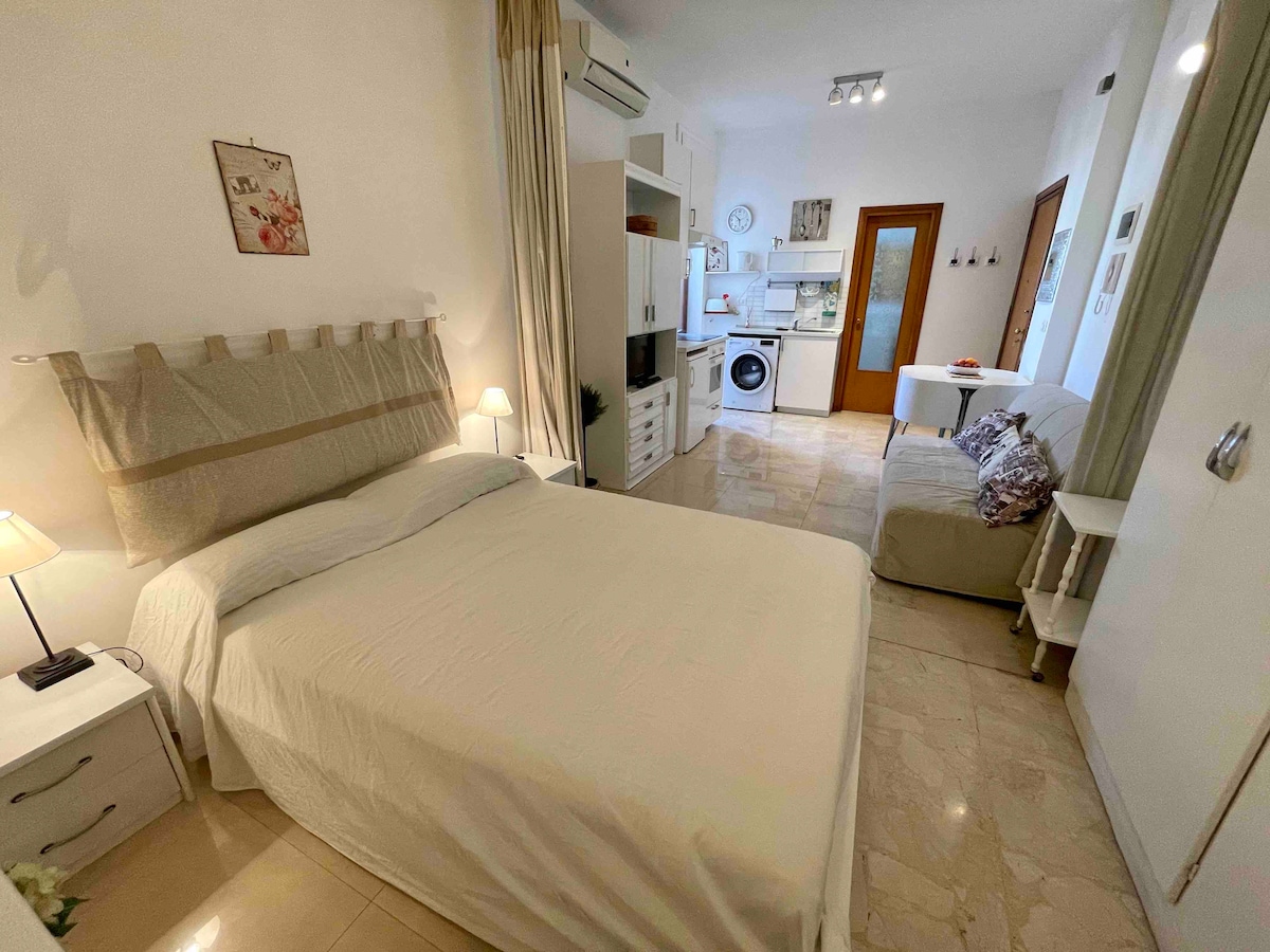 Nice cozy super-small studio, suitable for people who love essential, clean, nordic-style spaces. No-frills basic place, but instilled with love. 14 mq, 150 sqft, just renovated, parquet floor, cozy single bed, 100x60cm wardrobe, AC, heating system, table and chair as a workspace or eating place, microwave & fridge, bathroom with 100x70cm shower. The studio is located inside a medical center, but it retains its privacy, since it has its security door and nothing is shared.