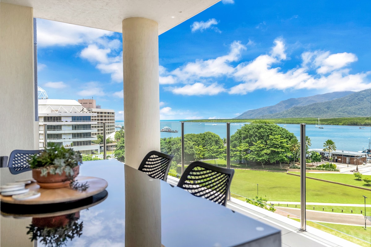 Increíble ubicación en el centro de la ciudad, vistas perfectas del agua y las montañas circundantes de Cairns. Totalmente climatizado, con capacidad para 6 personas en 3 dormitorios con vistas al agua y 2 baños equipados con productos Sukin de fabricación australiana. También hay 2 aparcamientos subterráneos seguros disponibles. A poca distancia a pie de muchos restaurantes excelentes, supermercados, el Centro de Convenciones de Cairns, el Casino Reef y atracciones turísticas. Siéntate, relájate y disfruta de las vistas mientras ves pasar los barcos.
