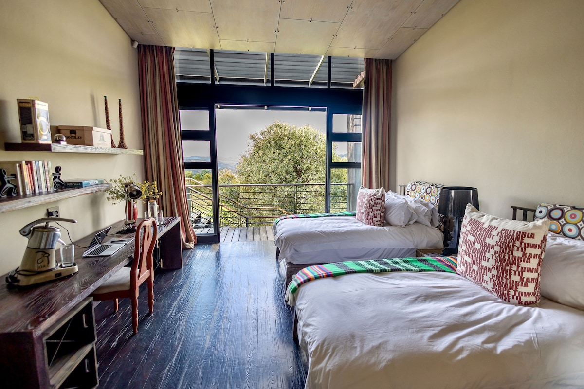 Escápate a un refugio tranquilo con vistas impresionantes a las afueras de Potchefstroom. Esta habitación estudio de planta abierta combina comodidad y estilo, perfecta para una escapada tranquila. Amplio diseño de planta abierta con una cama doble. Cocina pequeña con nevera, microondas y hervidor Acogedora sala de estar con aire acondicionado, Wi-Fi gratuito y TV Interior elegante con acabados modernos y paredes de azulejos estampados Baño privado con ducha Hermosos amaneceres y atardeceres para disfrutar. Este lugar único tiene un estilo propio.