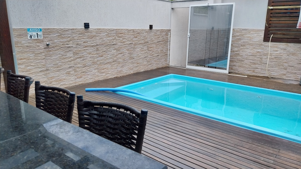 ¡Doy la bienvenida a tu refugio! Casa completa con 3 SUITES todas con aire acondicionado, ropa de cama y baño, PISCINA y mesa de ping pong, barbacoa y una maravillosa piscina con playa infantil, cascada, luces hidráulicas y led para fotos por la noche.