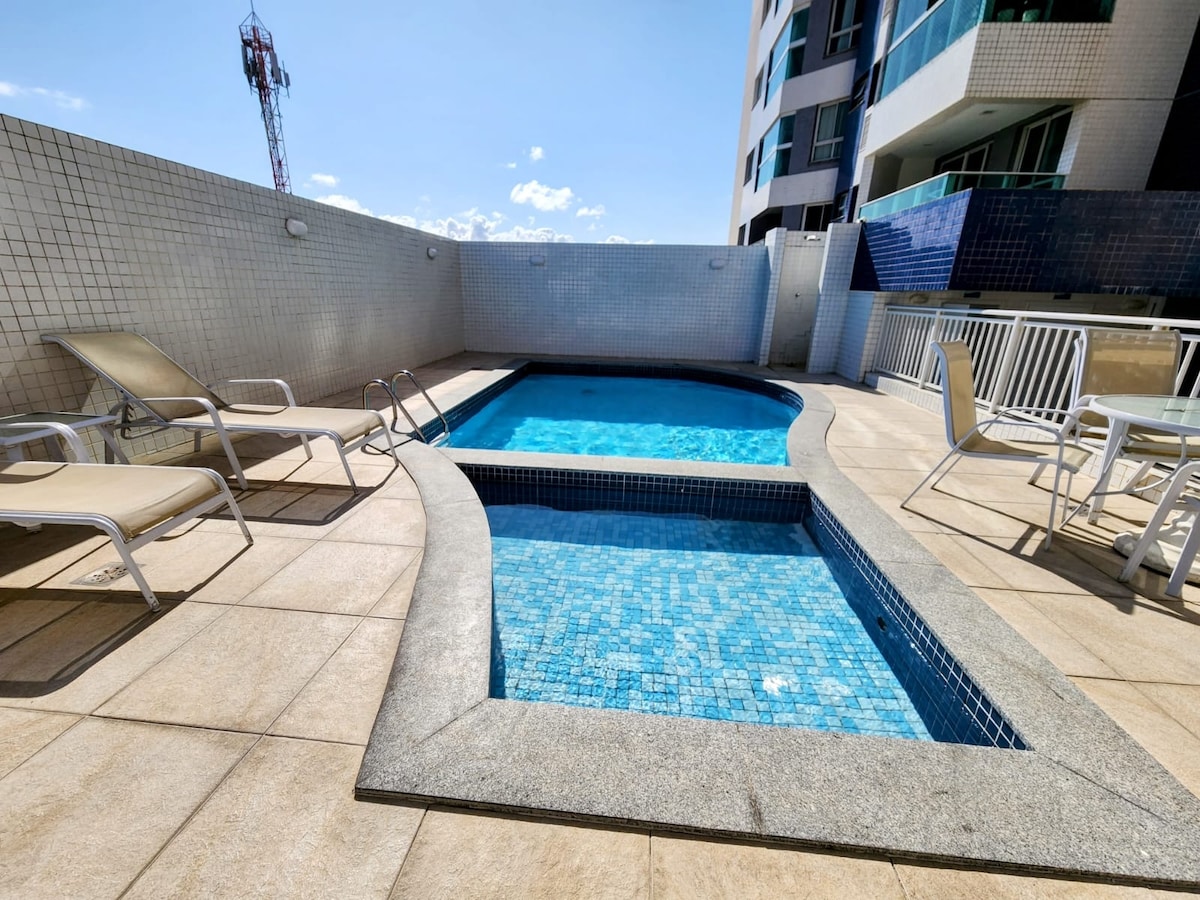 Excelente apartamento, con vista al mar, uno de los pocos edificios con piscina climatizada en el noreste de Brasil, cerca. Pas. del cangrejo, Orla de Atalaia, bares, restaurantes, panaderías, supermercados, farmacias, desde el balcón contemplarás el exuberante Mar y Cocoteros de Atalaia, dos habitaciones climatizadas, sala Smart tv 42 Pulgadas, suite tv 32 pulgadas, cocina/área serv.completa, serán días agradables y con mucho confort, estoy seguro de tu satisfacción, con este hermoso alojamiento.