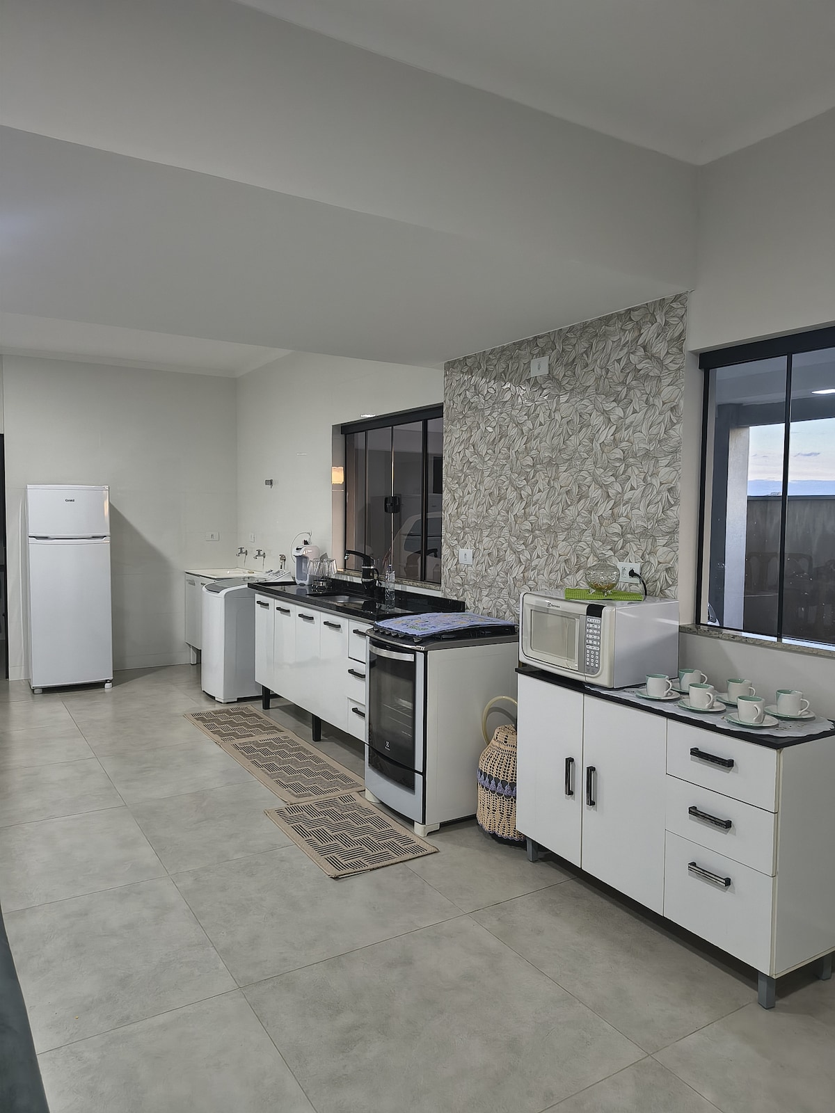 Relájate con toda la familia en este alojamiento tranquilo, cerca de panaderías, mercados, farmacias y bancos: todo lo que necesitas está a tu alcance. La casa tiene dos dormitorios completos. 01 – Cama matrimonial, mesitas de noche, armario y TV. 02- 4 camas individuales, armario Hermosa y acogedora sala de estar, TV, internet Cocina y despensa con todos los utensilios Zona gourmet y lavandería con lavadora Agua caliente en el baño y la cocina Garaje para un auto y una motocicleta