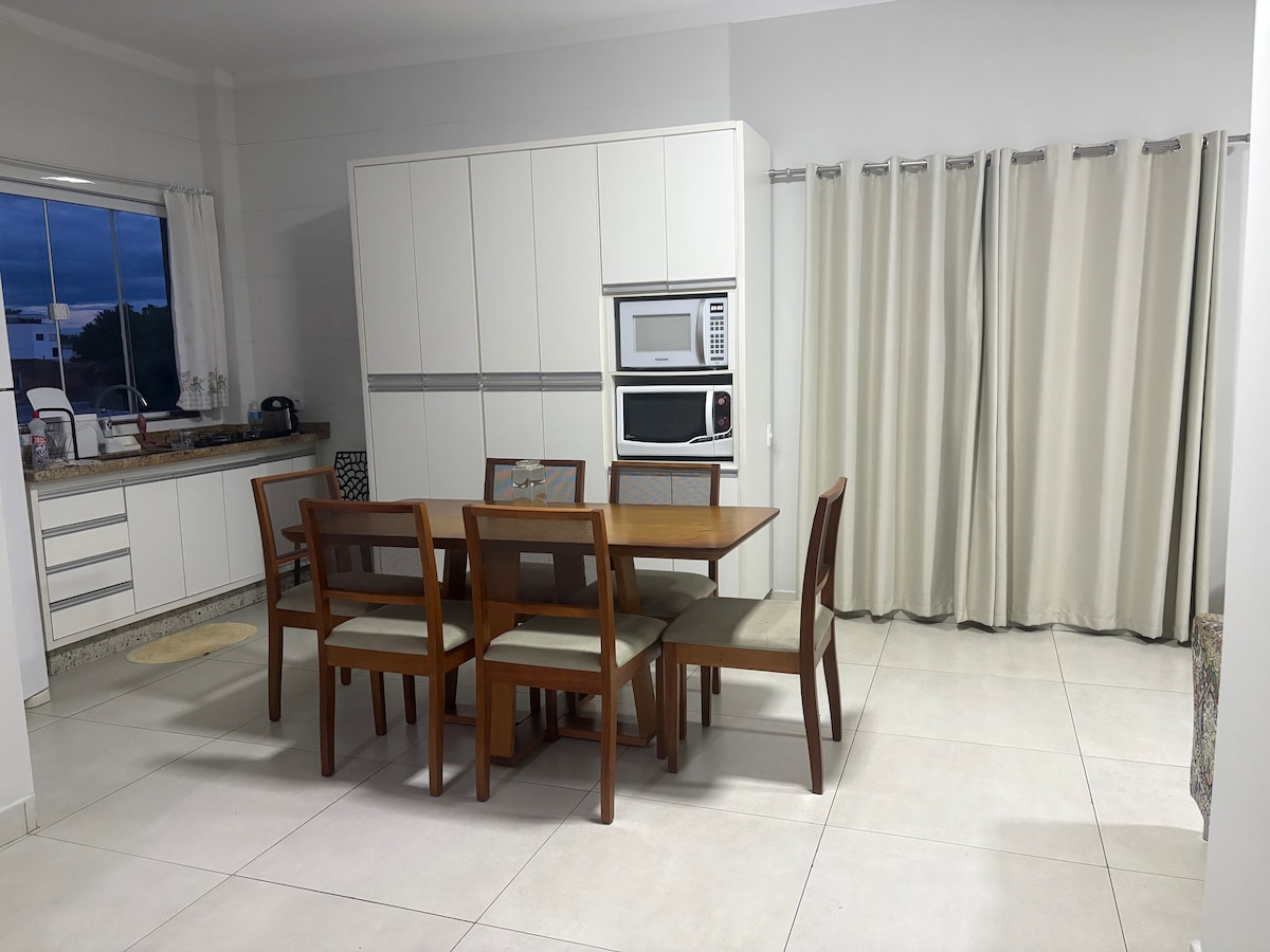 Anfitrión en la mejor región de Pouso Alegre: alojamiento recién renovado, tranquilo y bien ubicado con wifi de 500 Mb, TV Claro con 240 canales, películas y series, cómoda suite y cocina completa, que contiene todos los utensilios necesarios para preparar tu desayuno y otras comidas. En la sala de estar, también puedes utilizar las aplicaciones GLOBOPLAY, MAX, APPLE TV y NETFLIX (todas integradas en el televisor) para ver las películas y series de tu elección.