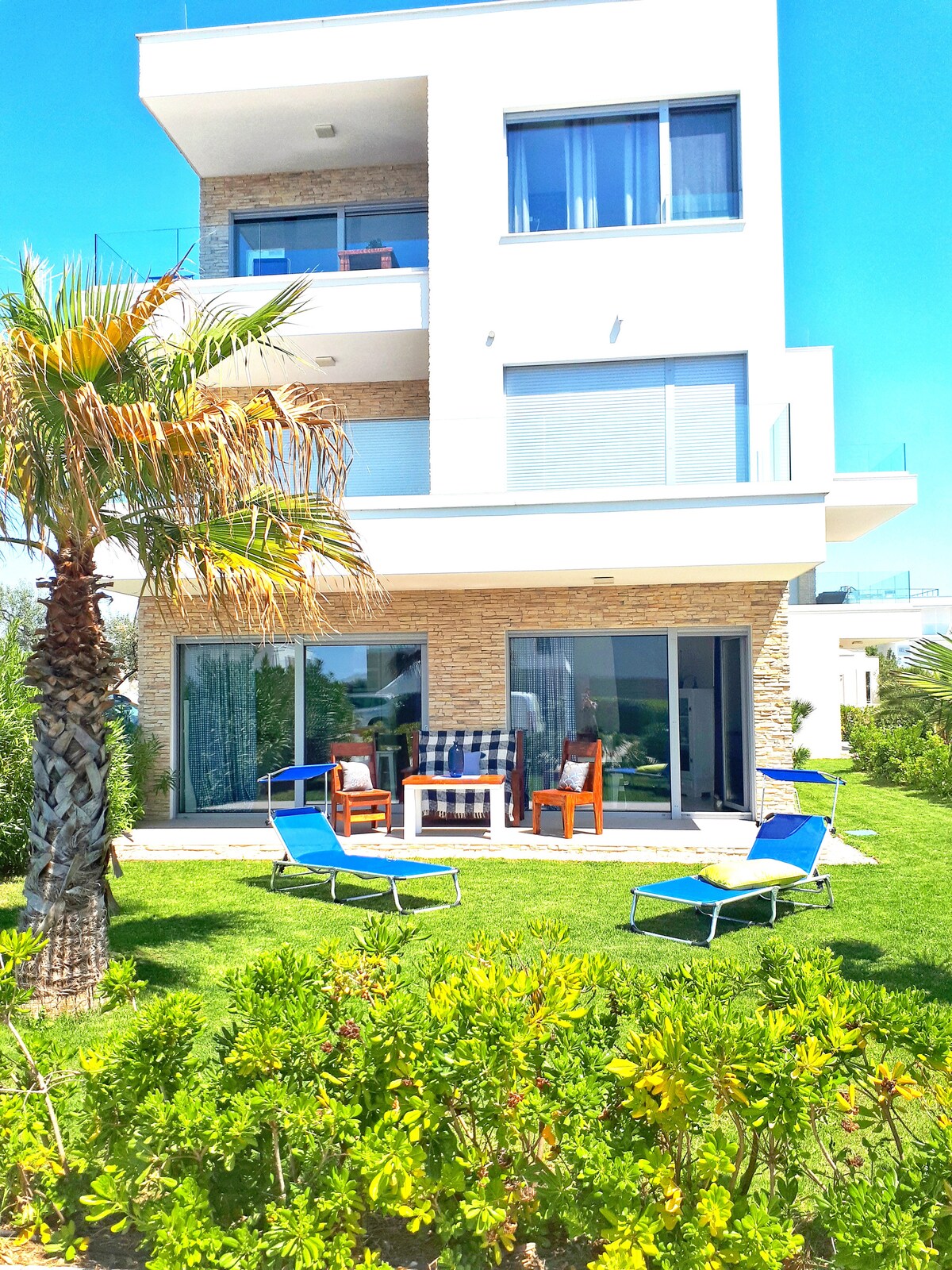 House Mate se encuentra a pie de playa. Contiene una gran piscina, un hermoso jardín (2000 m2) y dos apartamentos con terrazas cubiertas equipadas con jardín. La terraza tiene impresionantes vistas al mar.