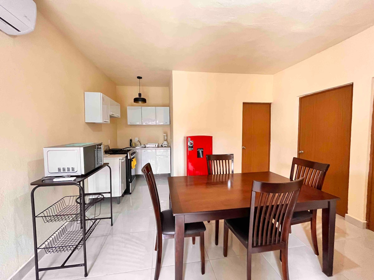Departamento pequeño pero muy cómodo con todo lo que necesitas para pasar unos días agradables. Con capacidad para máximo 6 personas, cuenta con internet, moderno ventilador de techo con bocina de Bluetooth, 2 recámaras con tv con cable y minisplit frío/calor, cocineta con utensilios de cocina, frigobar, microondas, baño pequeño y en su área de patio cuenta con asador, área de fogata, medio baño, además de su alberca (no climatizada) exclusiva para los huéspedes de este alojamiento.