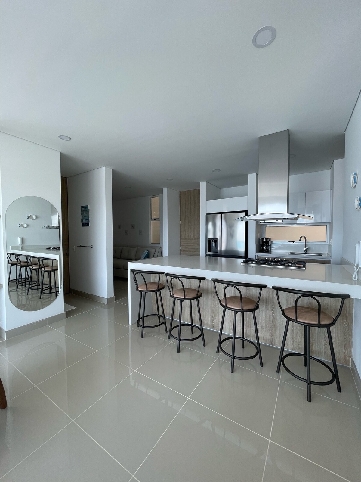 En este apartamento totalmente equipado escogimos cada elemento y diseñamos los espacios para que te relajes y disfrutes. Cuenta con cocina completa ✔ para que prepares delicias a tu gusto, wifi ✔, aires acondicionados ✔, cable ✔, zona de lavado ✔ y una terraza con hermosa vista al mar ✔. Podrás deleitarte con todas las amenidades que ofrece este fabuloso club de playa: jacuzzis ✔, saunas ✔, baños turcos ✔, piscinas ✔, restaurante bar ✔y kioskos de playa ✔ para que disfrutes el mar caribe.