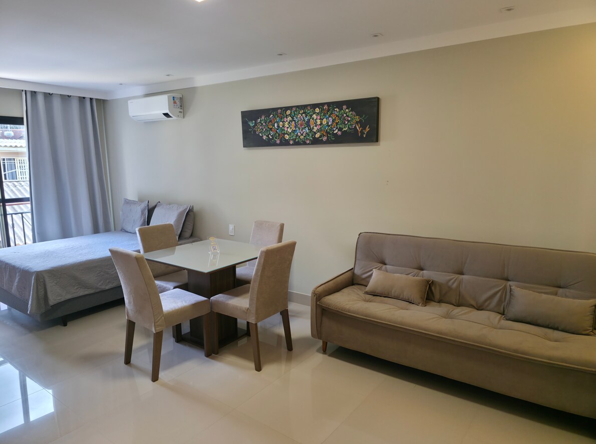 Acogedor estudio en el corazón de Domingos Martins – ES, ideal para parejas, amigos o viajeros solos. Tiene 1 cómodo dormitorio con cama doble y sofá cama, baño y cocina equipada para comidas rápidas. Ubicación privilegiada, cerca de restaurantes, cafés, tiendas y atracciones turísticas. Ambiente moderno, limpio y tranquilo para días de descanso en las montañas de Espírito Santo. ¡Reserva y disfruta de lo mejor de la ciudad!