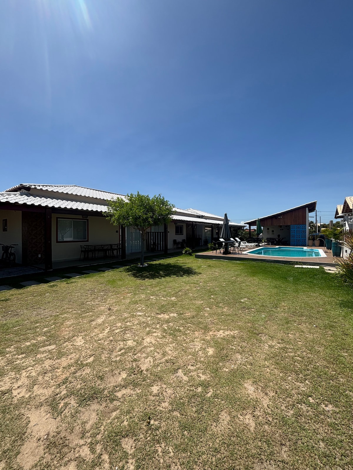 Relájese y diviértase con toda la familia en este lugar. ¡Mar a 3 minutos a pie de la casa (300 m) y también una piscina privada! A diferencia de otros lugares de la zona, esta casa ofrece privacidad con la zona gourmet y la piscina para uso exclusivo para usted y su familia. La calle es la mejor del condominio, con acceso a la primera pasarela a la playa, parque infantil con tirolina y mucha tranquilidad. Las habitaciones tienen aire acondicionado, además de excelentes camas (una king y otra queen size).