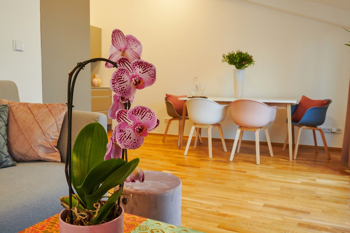 Disfruta de tu estancia en mi hermosa casa Jugent Stil construida en la década de 1890, pero recientemente renovada con todas las comodidades modernas que uno podría desear, incluido el aire acondicionado incorporado en todas las habitaciones. Apartamento de dos dormitorios bellamente decorado con techos altos históricos decorados con molduras de estuco ornamentadas, muebles de mediados de siglo y modernos en todas partes, baño con bañera grande y aseo separado. El lugar ideal para sentirse como en casa mientras estás en Praga, ya sea para un viaje de fin de semana, un viaje de negocios o estancias más largas.