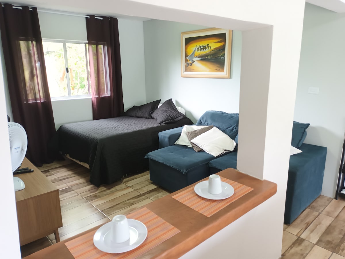 Relájate con toda la familia en este alojamiento tranquilo, en una casa de nueva construcción con todo lo necesario para los días agradables y felices, en un lugar donde el mar y el río ofrecen ocio para todos los gustos. A 8 minutos a pie de la playa y el río se puede pescar, caminar por la playa y ver el amanecer y el atardecer más hermosos. Jureia es un pueblo tranquilo, con naturaleza exuberante, cascadas y el río se encuentra con el mar. Tenemos un espacio de estacionamiento para automóviles pequeños y medianos.