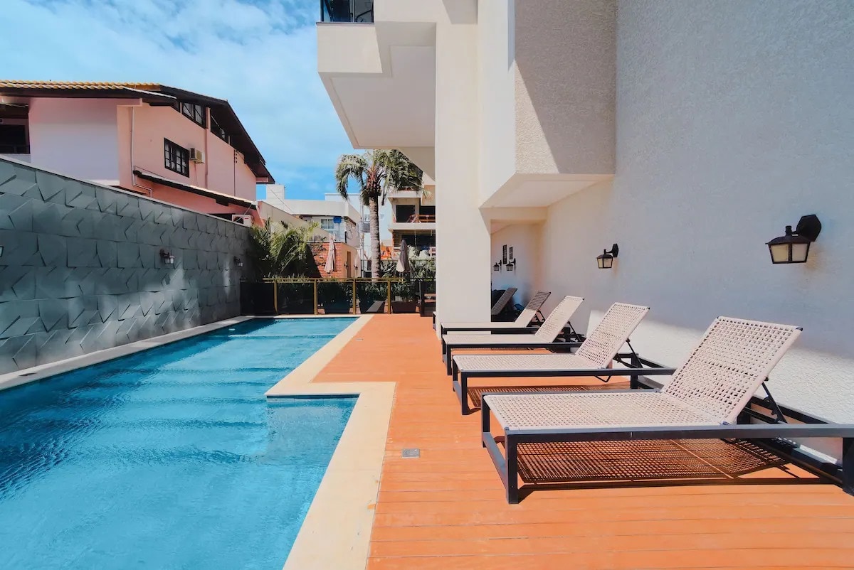 Hospede-se no coração da praia de Bombas. Apenas a 150mt da praia, o apartamento fica em uma região central, rodeada de comércios locais e essenciais para a sua estadia como: mercados, bares, restaurantes, etc. O apartamento é novo e completo, pensado para receber você e sua família com todo conforto e comodidade que merecem enquanto desfrutam suas férias. Além de estar muito próximo da praia, o apartamento possui vista para o mar e também piscina com área de lazer no condomínio.