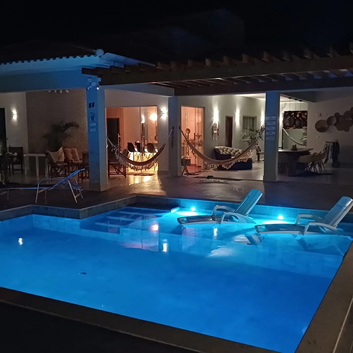 Relájese y diviértase con toda la familia en este lugar. ¡Mar a 3 minutos a pie de la casa (300 m) y también una piscina privada! A diferencia de otros lugares de la zona, esta casa ofrece privacidad con la zona gourmet y la piscina para uso exclusivo para usted y su familia. La calle es la mejor del condominio, con acceso a la primera pasarela a la playa, parque infantil con tirolina y mucha tranquilidad. Las habitaciones tienen aire acondicionado, además de excelentes camas (una king y otra queen size).