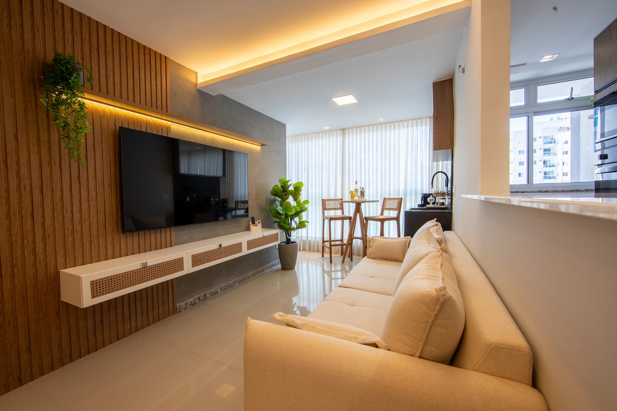 Incrível apto de 2 quartos c/ suíte, com planejamento exclusivo do escritório de arquitetura Marques&Piumbini. Estamos apenas 100 mts do mar da Praia de Itaparica, próximo a shoppings, farmácias, restaurantes, padarias, supermercados e food parks Ambientes totalmente climatizados com ar-condicionado split e smart TVs na sala e nos quartos, WIFI de ótima qualidade e garagem coberta. Destaque para o elevador panorâmico, piscina na cobertura e um mini mercado no hall. Atenção ler observações.