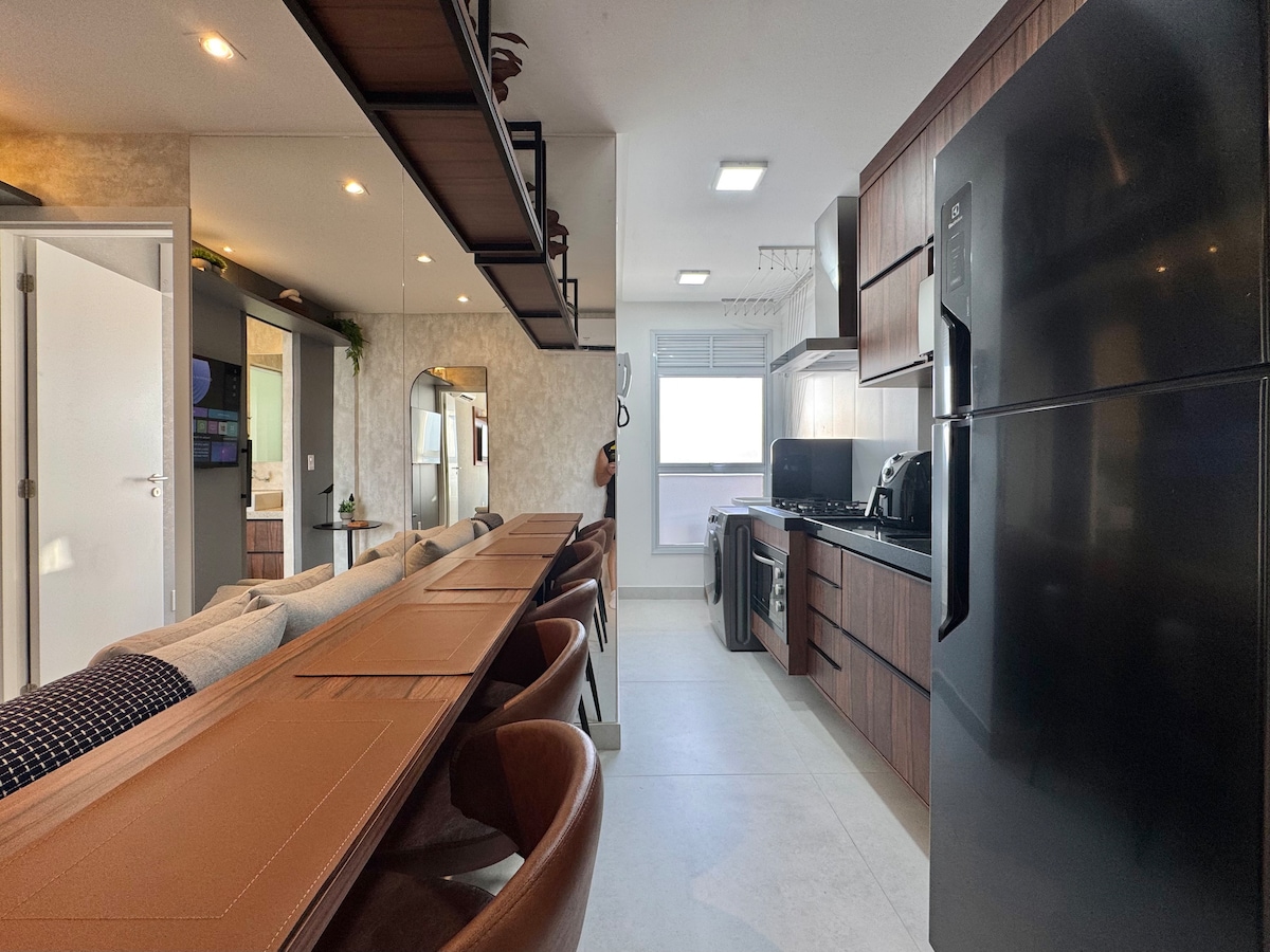 Apto, estilo loft, moderníssimo e acolhedor. Novinho. Cama Queen, ótimo chuveiro. Tudo bem planejado e decorado. Cozinha americana. Todo equipado: Ar condicionado no quarto, fogão, geladeira, micro-ondas, forno, smart tv. Toalhas e roupas de cama para os hóspedes.