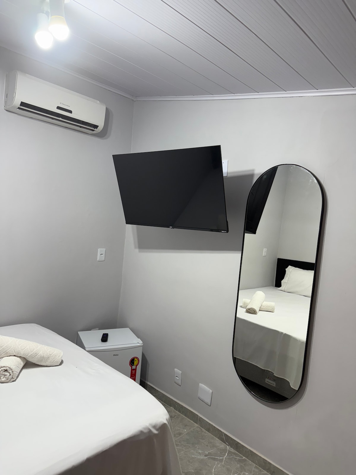 La suite está en el segundo piso. La suite no tiene estufa, pero tiene sandwichera, cafetera, nevera y etc... La suite tiene una cama doble, una cama individual, aire acondicionado, TV y ventilador. La suite se encuentra al final de la calle Getulio Vargas, llegando a la playa de Canto. El lugar es muy tranquilo y familiar, por lo que no permitimos música alta en el espacio. Aceptamos mascotas pequeñas. Hay agua caliente en la ducha. La suite es independiente