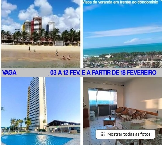 Apartamento em frente a uma famosa praia de Fortaleza com todo requinte de um resort, ao lado do Hotel Vila Galé e no caminho do beach park. Tem 2 suítes, com camas box e ar condicionado. Cozinha completa. Sala com sofá e uma mesa de jantar com 4 lugares. Varanda com armador de rede e uma mesa, uma vista maravilhosa da praia. Condomínio com segurança 24 horas, recepção, área de lazer completa, 4 piscinas, sendo uma com raia.