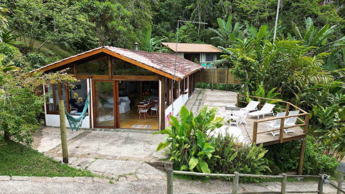 Acogedor chalé, con una mirada increíble de Praia Vermelha do Centro y a unos 25 minutos, a pie, de Cedro Beach, considerada una de las diez playas más hermosas de Brasil. Nuestro chalet está rodeado por la Selva Atlántica con varias especies de aves, ardillas y hermosas mariposas azules, que comparten este pedazo de paraíso con nuestros huéspedes. Estamos ubicados cerca del barrio bien estructurado de Itaguá, donde podemos encontrar supermercados, farmacias, panaderías, tiendas y restaurantes.