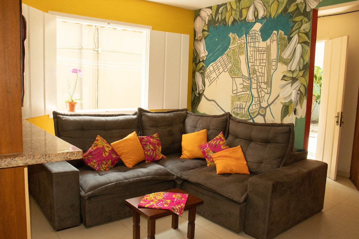 Un espacio tranquilo y familiar, diseñado para aquellos que valoran la paz, la comodidad y la practicidad. Ideal para familias, grupos de amigos o parejas. Lejos del bullicio, pero con fácil acceso al centro histórico, playas, tiendas y restaurantes de Paraty.