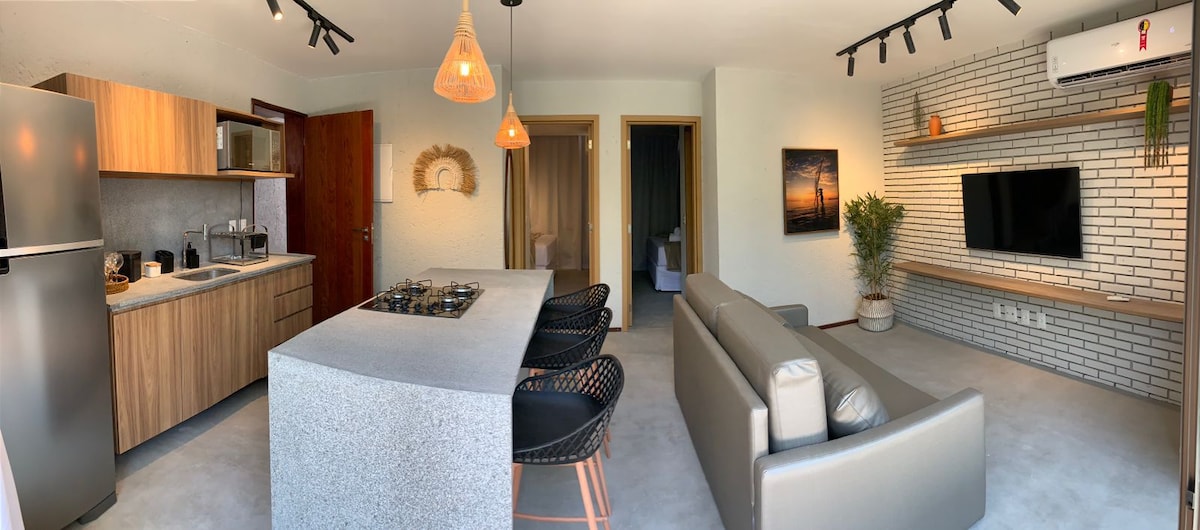 Si buscas comodidad, practicidad y una ubicación privilegiada en São Miguel dos Milagres, el apartamento Bali 105 es la opción ideal. Situado a solo 90 metros de la playa de Riacho, una de las más encantadoras de la Ruta Ecológica, con fácil acceso a la playa, a 2 minutos a pie. El mar es tranquilo con aguas cálidas y cristalinas, perfecto para relajarse y disfrutar de lo mejor de la costa de Alagoas. Dormitorio y sala de estar de 42 m² con aire acondicionado, con capacidad para un máximo de 4 personas, cama tamaño queen y sofá cama en la sala de estar. Cocina completa.