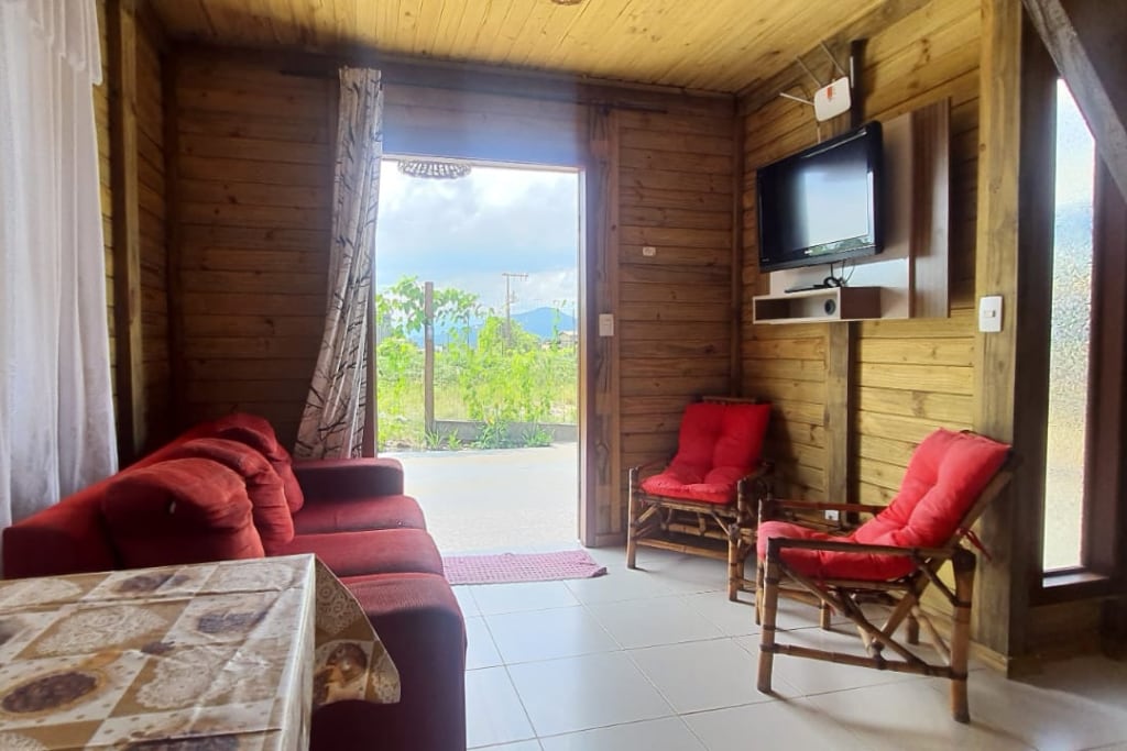 Chalé en la cima de la colina cerca del mar y con una vista de las montañas y dunas que proporciona un final de día con una maravillosa puesta de sol, acceso a la playa de los amores y de agua por senderos. Ambiente muy agradable y seguro, con aire acondicionado y wifi. Estamos ubicados en Imbituba. En la playa de Ribanceira A 5 minutos de la barra de Ibiraquera A 10 minutos de la playa de la villa A 20 minutos de la playa del Rosa Todo esto en coche.