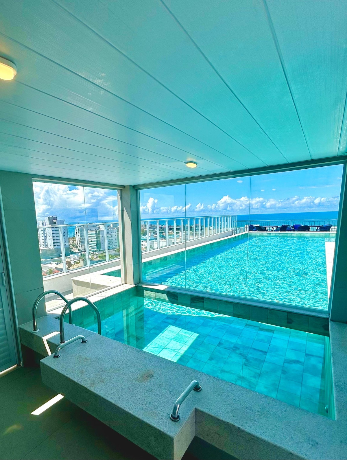 Apê 15m da praia c/garagem, piscina, ar cond, wifi