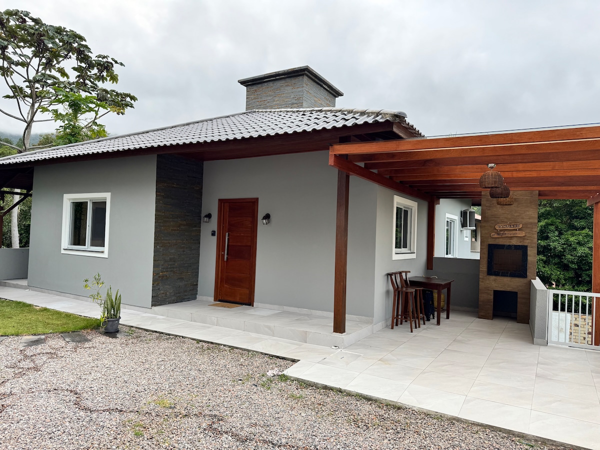 Relájese en un lugar tranquilo, en contacto abundante con la naturaleza, cascada, piscina natural con pérgola, terraza con vista a la montaña y al mar, privado y reservado. El lugar es soleado con un hermoso jardín, árboles frutales, árboles nativos y otros espacios contemplativos. Permite tomar hermosas fotos, observar aves y la biodiversidad de la Selva Atlántica. La casa se encuentra en la cima de la colina con un sendero a lo largo del río. Se admiten mascotas. Los niños juegan en el jardín.
