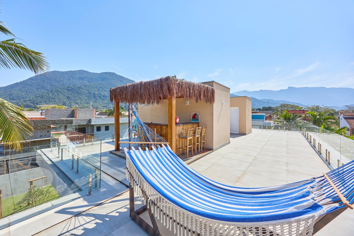 ¡Bienvenido a tu refugio junto al mar en la costa norte de São Paulo! Ofrecemos una experiencia completa de comodidad, estilo y conexión con la naturaleza, todo con el mar a tus pies. En menos de un minuto a pie, estarás tocando las aguas de la playa. 📍 Ubicación: a pocos minutos a pie de la encantadora Laguna Azul y a solo 5 minutos en coche de un supermercado, farmacia y tiendas de conveniencia. Estamos a 20 minutos del centro de Caraguatatuba y a aproximadamente 1 hora de Ilha Bela y São Sebastião.
