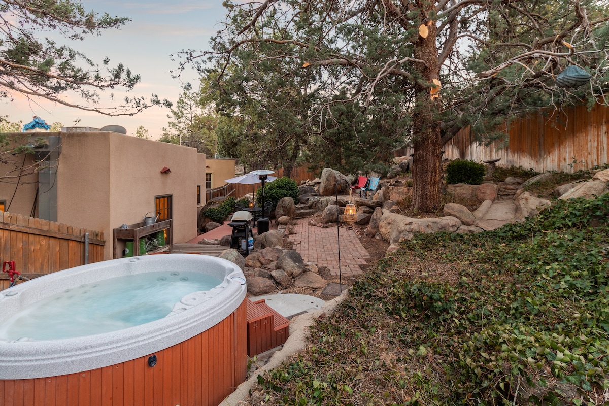Disfruta de una casa única a poca distancia a pie del centro de la ciudad. Esta hermosa y privada casa cuenta con un jacuzzi, áreas de descanso delanteras y traseras con barbacoa y una cascada/estanque en el patio delantero El baño incluye un inodoro inteligente japonés e impresionantes torres de ducha dobles. La cocina moderna está totalmente equipada con electrodomésticos nuevos y utensilios básicos de cocina. ¡Ven a disfrutar de esta escapada pacífica y tranquila hoy! Nota: Debido a las bajadas/cambios de elevación, el alojamiento no es apto para personas mayores.