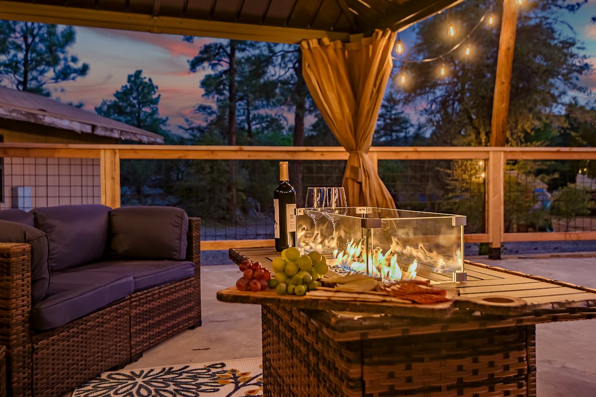 Cabaña 🌄 de lujo con spa, sauna, piscina y 5 acres | Vistas Relájate, recarga energías y escapa a esta cabaña MTN bellamente renovada a solo 20 minutos del centro de Prescott. Ubicado en el punto más alto del vecindario en 5 acres privados, es el lugar perfecto para desconectarse y conectarse con la naturaleza sin sacrificar la comodidad Te encantarán las vistas panorámicas a la montaña, el jacuzzi, la sauna y la piscina de temporada. Ya sea que estés aquí para una escapada romántica, un retiro tranquilo en solitario o una pequeña aventura familiar, esta cabaña lo ofrece todo.