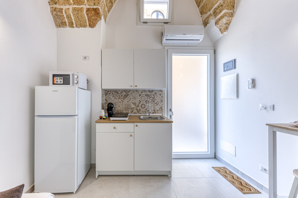 Chios es una realidad perfecta para una pareja: un loft exclusivo rodeado de dos grandes terrazas. Los interiores están completamente hechos a mano y personalizados. Un lugar íntimo, pero al mismo tiempo inmerso en un animado centro histórico típico del Bajo Salento. Gracias a la fuerte conexión wifi, el trabajo inteligente es perfecto en cualquier temporada. El apartamento ha sido reformado en clave contemporánea, respetando el vínculo entre lo antiguo y lo nuevo.
