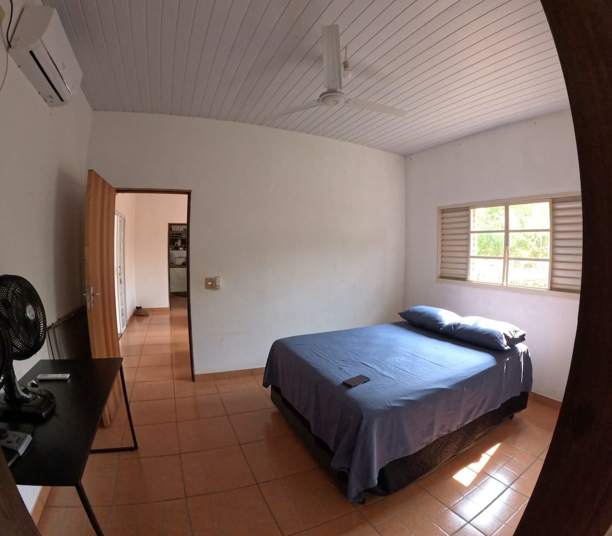 El rancho está cerca del río Paraná, con aproximadamente 1 km de distancia, a tres cuadras del mercado, a dos del puesto y del restaurante cercano. Tenemos 2 suites, una con una cama individual y 1 de matrimonio y la otra con 3 camas individuales, ambas con armario y aire acondicionado en ambas habitaciones. Cocina exterior y habitación, equipada para satisfacer tus necesidades, además de una zona gourmet con zona de barbacoa. Ven a quedarte con nosotros, estamos a tu disposición.