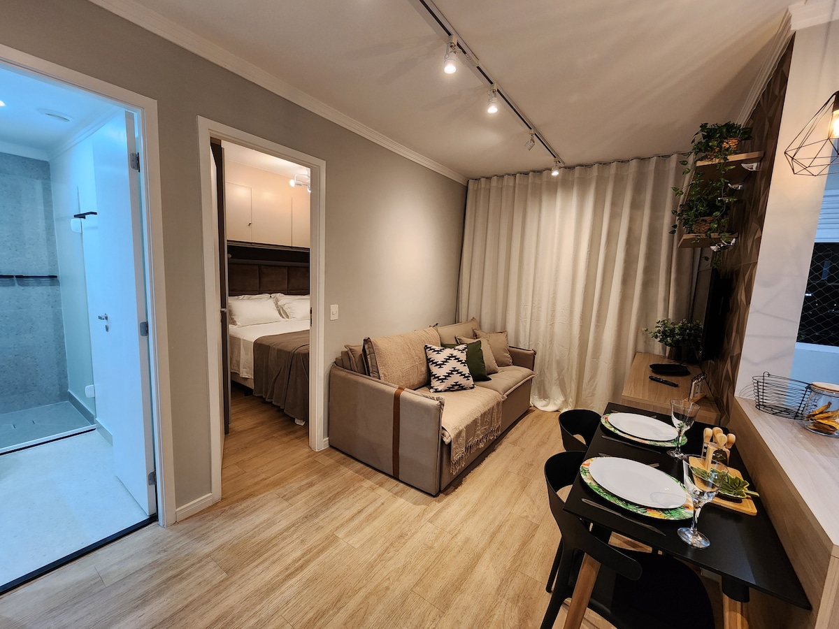 Apartamento nuevo, de estilo contemporáneo, de alto nivel y muy bien ubicado, con una vista privilegiada a Allianz Parque. Junto a centros comerciales, varios negocios, medios de transporte, parques, atracciones turísticas y edificios de negocios. El estudio está completo, con una cómoda cama queen, TV inteligente e Internet. Cocina con todos los utensilios, encimera, nevera y microondas. Con estacionamiento (rotativo). Cerca de todo, acogedor, perfecto para experimentar momentos fantásticos.