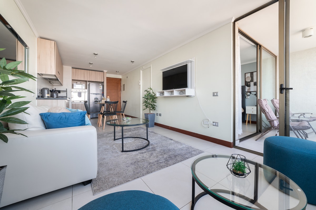 Disfruta, relájate y conoce Santiago. Departamento nuevo, full equipado ubicado en sector residencial a 7 min del Metro y a 1 cuadra del Estadio Nacional. Cuenta con 1 dormitorios y 1 baño, aire acondicionado, zona recreativa para niños, estacionamiento privado y seguridad 24/7; ideal para familia, matrimonios, parejas, amigos y aventureros. Alejado del ruido y a metros del Estadio Nacional.