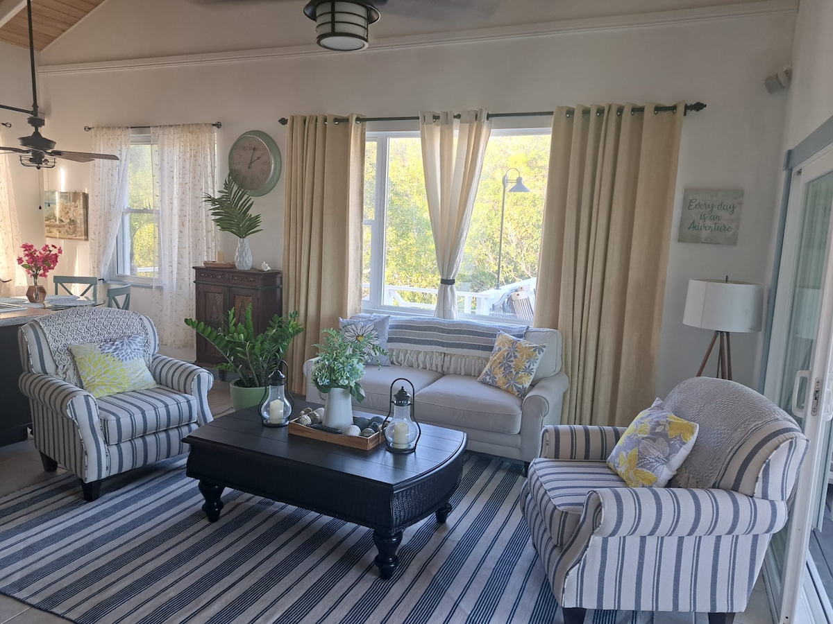 2 Bedroom Cottage with access to the canal for Stand-Up paddle boarding, kayaking or swimming. This cottage is perfect for a couples' retreat, friends getaway or families. Featuring 2 spacious Queen bedrooms, en suites, and a back patio with exterior furniture, it offers classic luxury and tranquility. Just 5 min from Grace Bay beach, restaurants, and shops, the cottage boasts classic caribbean and clean interiors, premium amenities, and a peaceful backyard with palm trees and bougainvillea.